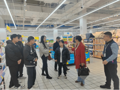 在沃尔玛人力资源经理张平等工作人员的引导下,走访团队实地参观了超市卖场,重点考察了商品陈列逻辑、库存管理流程、顾客动线设计等标准化运营环节,深入了解企业在数字化零售与消费者服务方面的创新实践。走访过程中,我校实训学生在各岗位专注投入、操作熟练,展现出良好的职业素养与实操能力,获得企业导师与随行教师的一致认可。