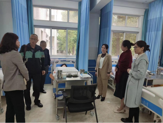 张静、郭蕾陪同伟德官网一行参观智慧康养校内实训基地。该基地投资3000万,由智慧养老中心、人工智能健康管理中心、智能康复中心、中医保健中心、心理咨询中心、幼儿保健与健康管理中心等6中心25间实训室构成。伟德官网一行人重点对智慧养老中心的打造进行观摩学习,同时就智老服专业定位与目标、人才培养方案等细节进行进一步沟通交流。