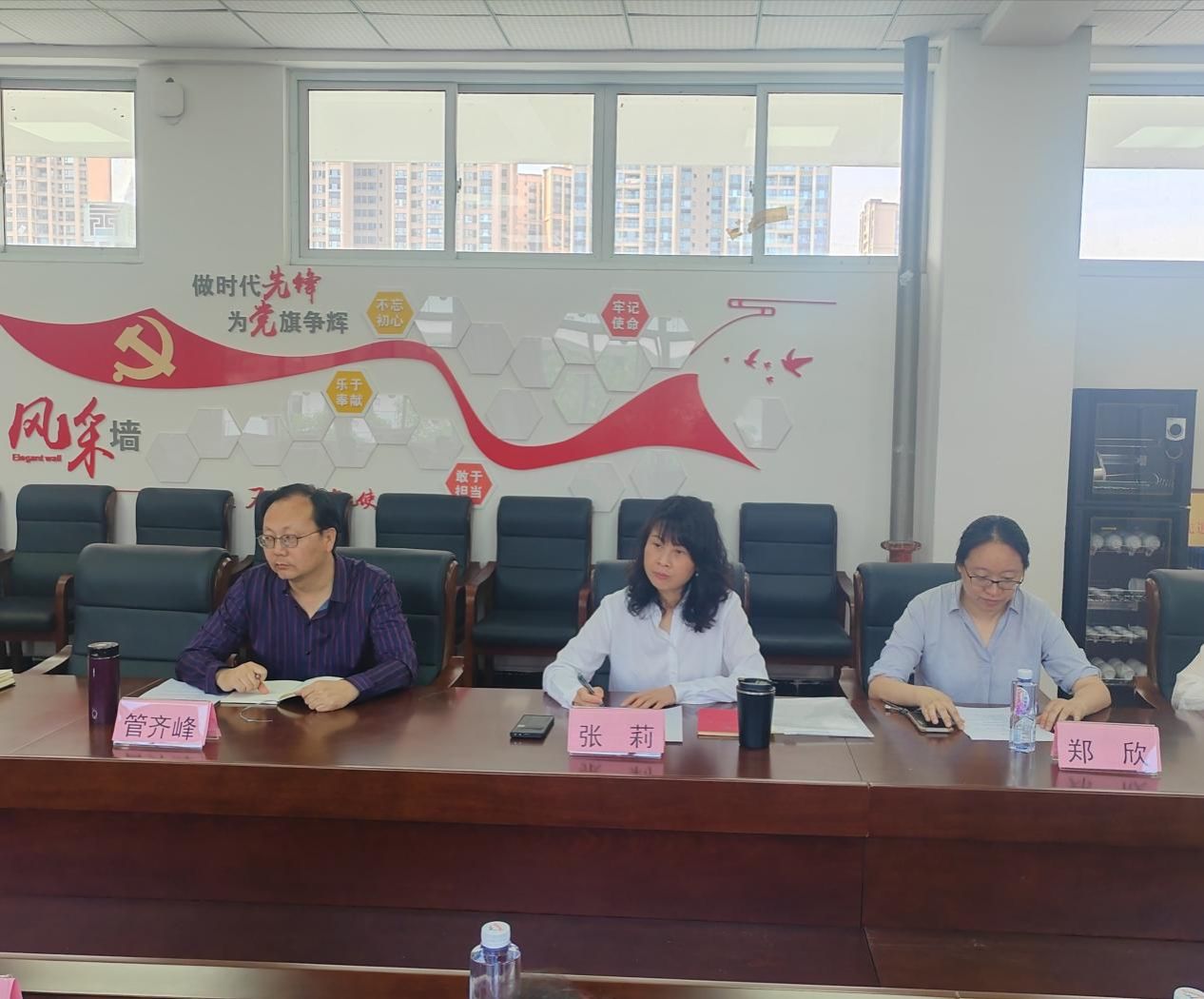5月28日,成都市温江区商务局、宁波全球贸易通集团、成都星河九联公园城市建设有限公司一行就数智贸易实训基地“创新工场”校企合作事宜来伟德官网座谈交流。成都市温江区商务局(区现代服务业发展促进中心)副主任杨洪翔、招商一部主管白钟伟,宁波全球贸易通集团西南区总经理刘传彪、项目总监马文琴,成都星河九联公园城市建设有限公司党支部书记李冠夫,伟德国际victor1946宣传统战部部长、经济贸易系党总支书记管齐峰,经济贸易系主任张莉等参加本次座谈会。