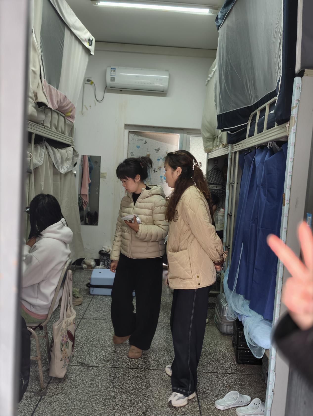 在关怀学生的同时,安全检查是本次走访的重要环节。老师们重点对宿舍用电安全、消防安全、物品摆放、卫生状况等进行了全面排查。针对部分宿舍存在的插排串联、违规电器使用、充电设备长时间通电、物品堆放阻碍通道等安全隐患,进行了现场提醒与教育,要求立即整改。老师们反复叮嘱同学们要牢固树立安全意识,严格遵守公寓管理规定,做到人走断电、锁好门窗,共同维护好宿舍这一“小家”的安全环境;提醒大家注意防火、防盗、防诈骗及交通安全,结合冬季特点,特别强调了规范使用空调。