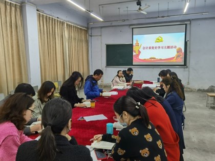 4月20日,会计系党支部召开党史学习专题会。会计系全体党员参会,系总支周发强副书记主持会议。