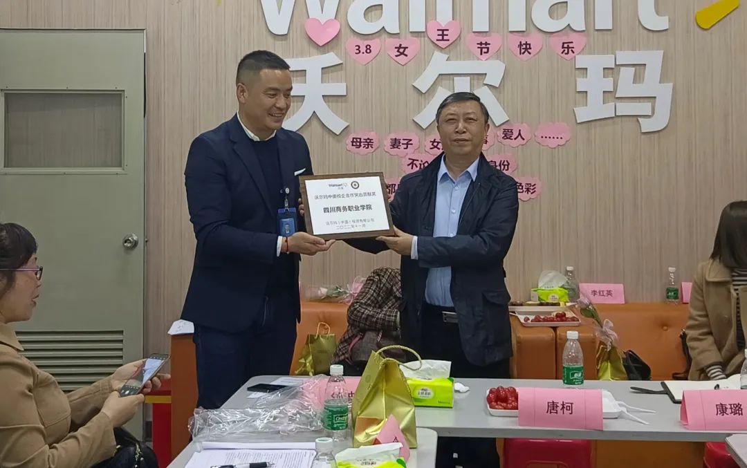 座谈会上,沃尔玛华西区区域人力资源经理钟波首先对伟德官网一行人员表示热烈欢迎,介绍了公司的基本情况、运行现状以及2023年的招聘计划,对伟德官网实习学生的综合表现给予肯定性反馈,并向学院颁发了“沃尔玛中国校企合作突出贡献奖”牌匾,经营管理系连锁经营管理专业负责人刘刚老师荣获“沃尔玛中国校企合作优秀教师”称号。