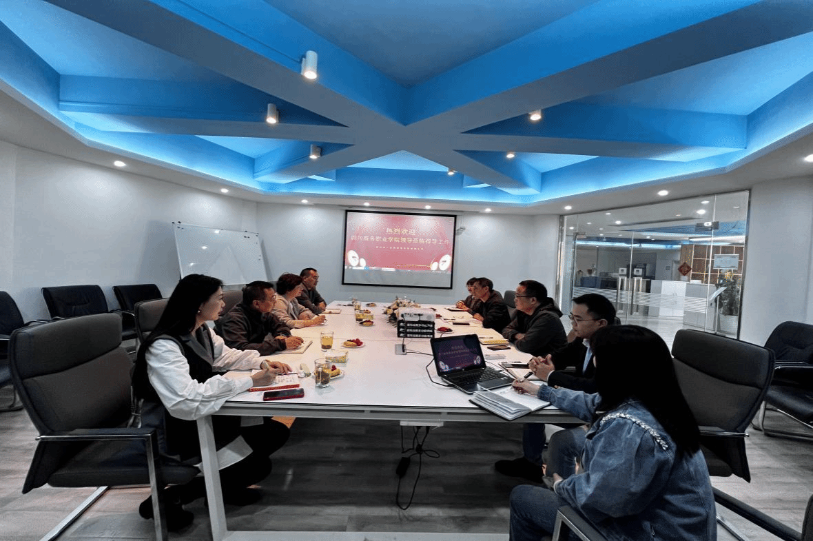 王军一行在普惠信息服务有限公司人事经理张瑜的陪同下参观了企业,并召开师生联谊座谈会。会上首先介绍了公司的整体概况、人才招聘、员工福利、员工晋升渠道等情况,并对学院的专业建设、人才培养、教师发展、校企合作等方面提出了宝贵建议。会计系党总支书记周发强就学生实习就业的岗位需求、工作任务、薪酬结构、薪资待遇等方面进行了交流;会计系副主任杨晴就考核管理和专业建设等方面与企业方进行了深度的交流。