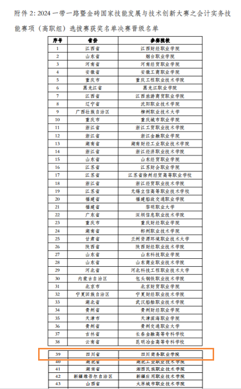 9月28日,由伟德官网会计系杜晓玲、余欣悦老师指导的代表队从全国644支参赛队伍中脱颖而出,荣获2024一带一路暨金砖国家技能发展与技术创新大赛之会计实务技能赛项(高职组)选拔赛全国二等奖,并以四川省第一名的成绩晋级全国总决赛。