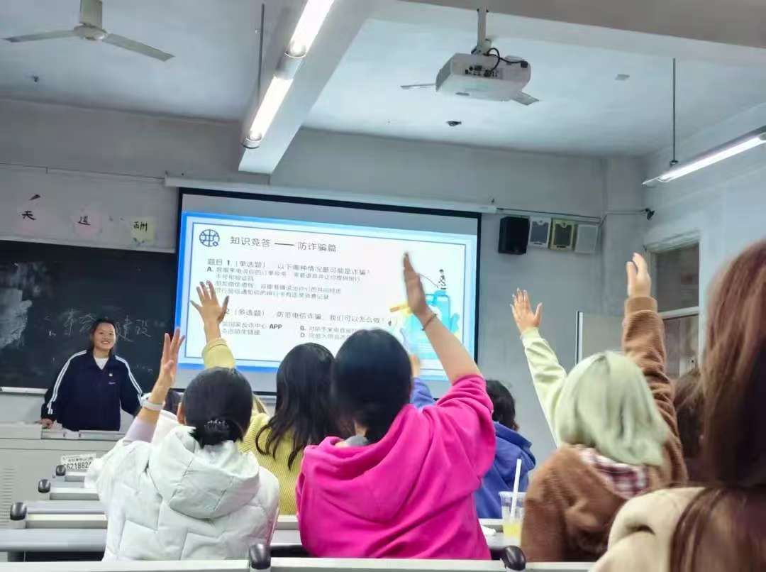 知识竞赛,夯实理论根基。涵盖防诈骗、公共安全等内容的竞赛紧张有序,同学们踊跃参与、对答如流,在比拼中巩固所学知识,提升防范能力。