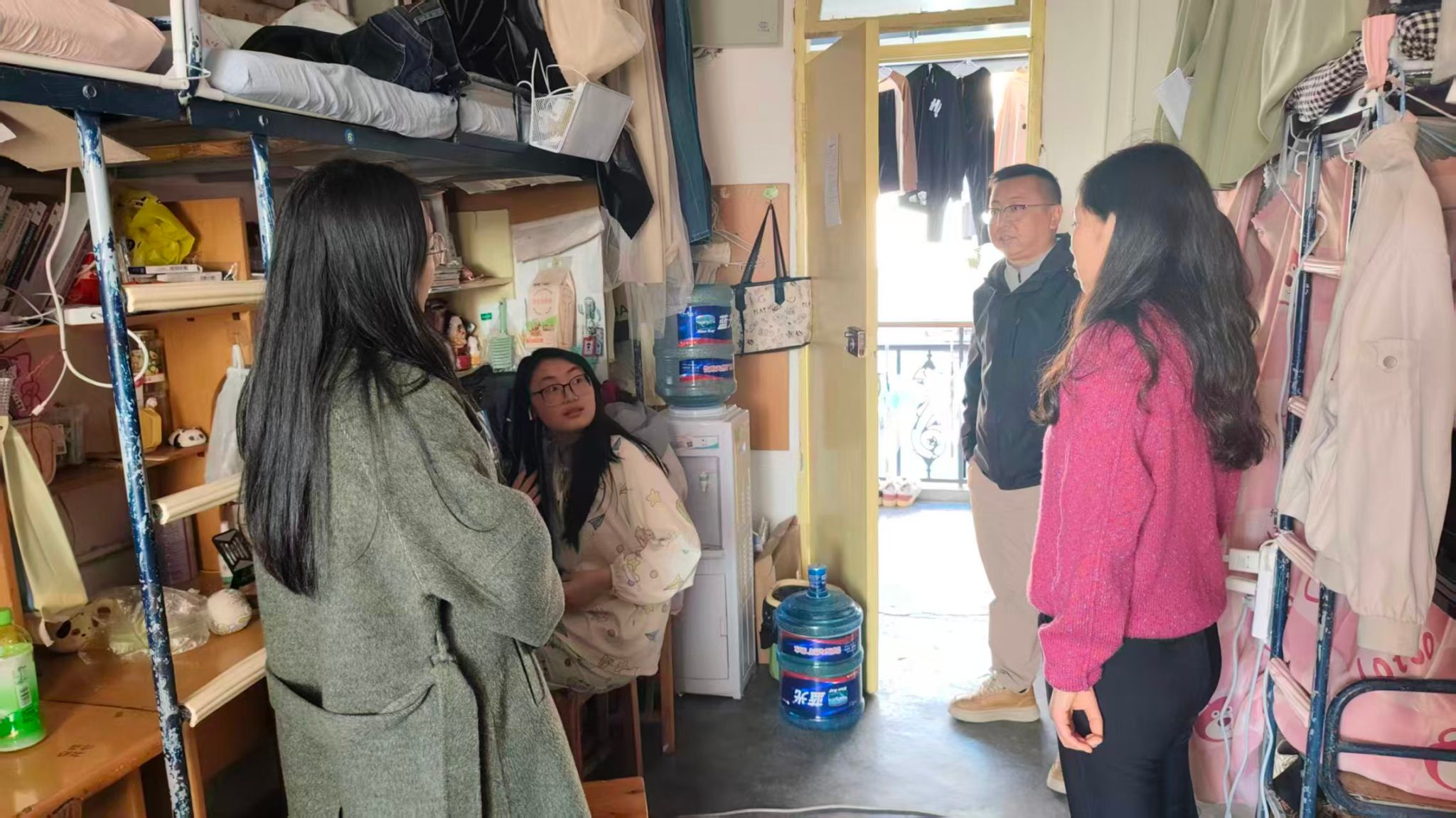 3月31日与4月1日晚,会计系党总支书记周发强、副主任杨晴、夏远江教授带领全体辅导员,深入学生宿舍与晚自习教室,开展以“筑牢安全底线、提升学业高线”为主题的专项走访行动,为学生的生活与学习提供"双重守护"。