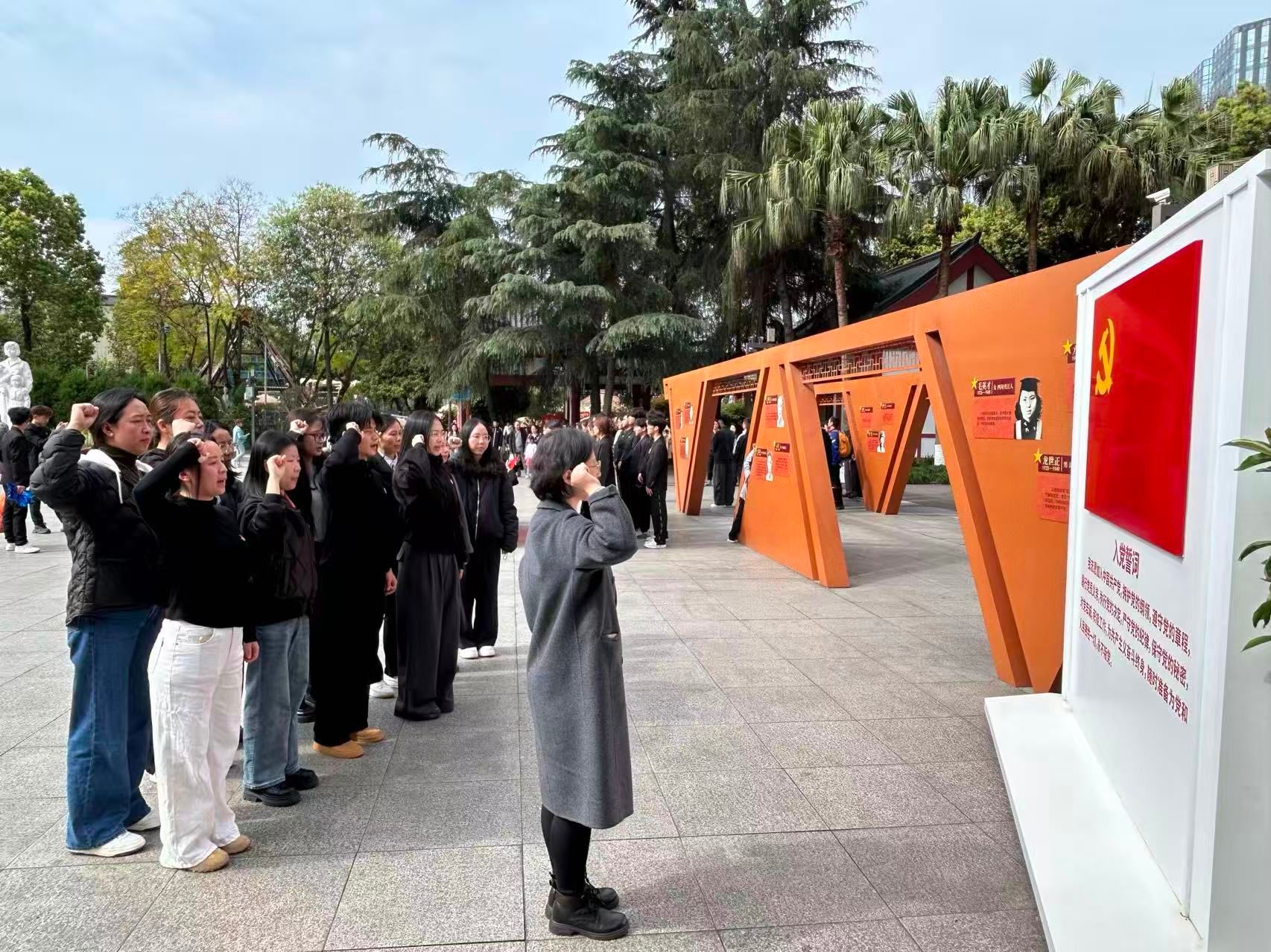 参观结束后,全体党员面向党旗,高举右手,重温入党誓词。党员们肃立瞻仰,以此寄托对革命先烈的无限哀思。最后,大家纷纷表示,将铭记历史、缅怀先烈,把红色基因融入初心使命,将爱国情怀转化为奋进动力,勤学苦练、勇担责任,以青春之力续写时代的壮丽篇章。