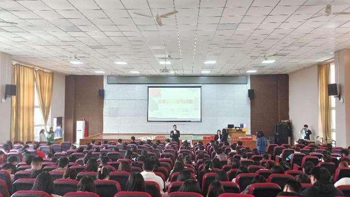 中国农业银行成都锦城支行刘怡兰行长亲自为大家宣讲,我系22级旅游管理专业、营养配餐专业、酒店管理与数字化运营专业的200余名同学参加。