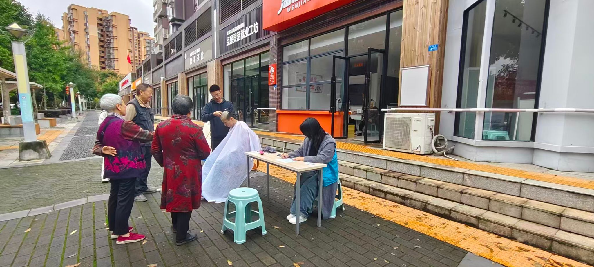 活动筹备阶段,志愿者们提前到场,协助工作人员细致完成工具清点、场地布置与流程规划工作,不仅将理发围布、剪刀分类摆放整齐,还为磨刀区域划定安全等候线,并协助医护人员搭建义诊登记台,用全面且周到的准备为活动开展筑牢基础。活动开展过程中,志愿者们分工明确又主动补位,在理发区引导居民有序排队理发,在磨刀点协助居民登记刀具信息并提醒等候居民注意安全,在义诊区全程陪同老年居民,协助完成信息填写与血压测量,有效缓解了现场工作人员压力,保障各项服务高效运转。