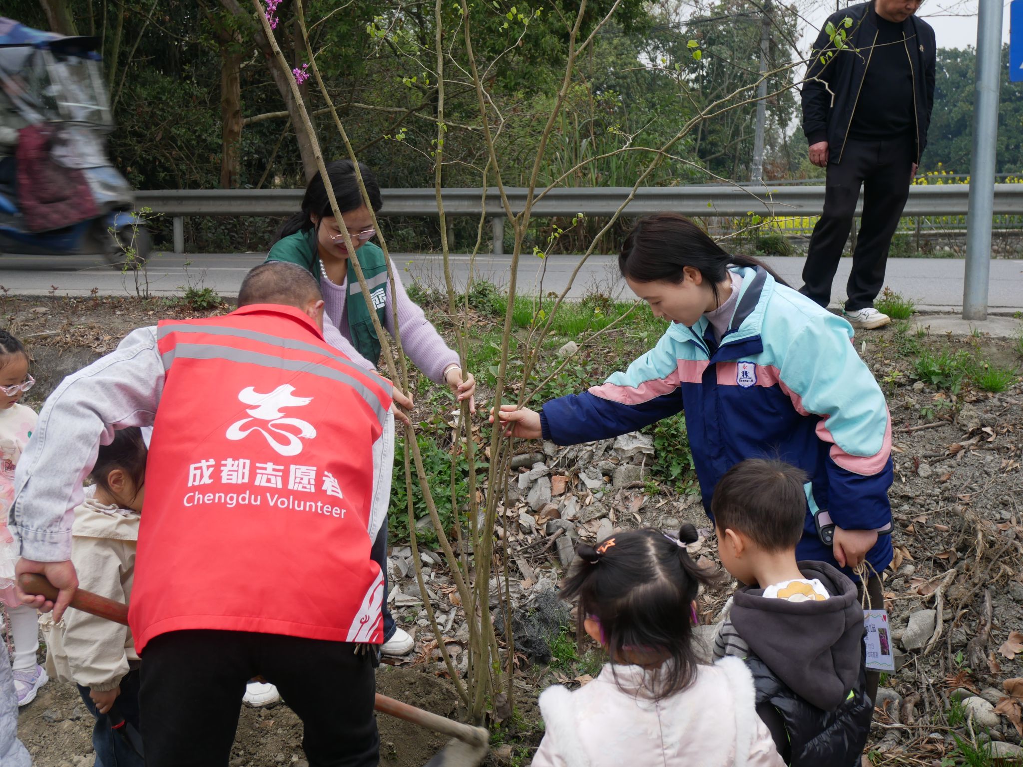 活动互动环节趣味十足。小朋友们在老师与志愿者的带领下,踮起脚尖紧握小铁锹认真铲土填坑,齐心协力提着小水桶为树苗浇水,每一个稚嫩的动作都满含对绿色的期待,现场欢声笑语不断。一棵棵小树苗在大家的共同努力下扎根泥土、迎风挺立,既让孩子们在动手实践中感受劳动的乐趣,也让植绿护绿、爱护自然的理念深植心间。