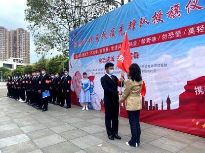 仪式上,系党总支书记陈根元强调了目前全国疫情形势的严峻性,也阐述了旅游管理系抗疫先锋队成立的必要性和紧迫性,希望以学生党员为骨干的先锋队,能够带动全系甚至是全院的师生更加重视疫情防控,更要把防控措施走深走实,入细入微。仪式第二项是系主任张莉将“抗疫先锋队”队旗交到队长何忠明手里,何忠明带领28名队员进行了庄严的宣誓。