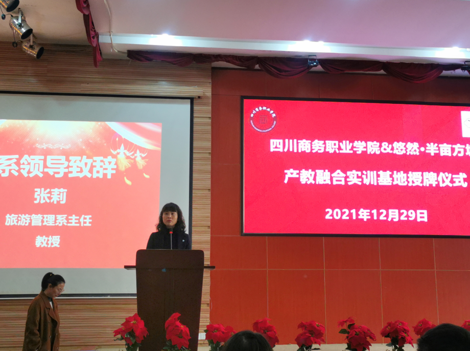 12月29日,伟德国际victor1946与半亩方塘产教融合实训基地授牌仪式在和盛校区隆重举行。成都悠然半亩方塘酒店管理有限公司运营副总王范玲,学院党委委员、副院长许丹雅教授,教务处处长黄松教授,旅游管理系领导,以及校企双方代表出席授牌暨师资互聘仪式。