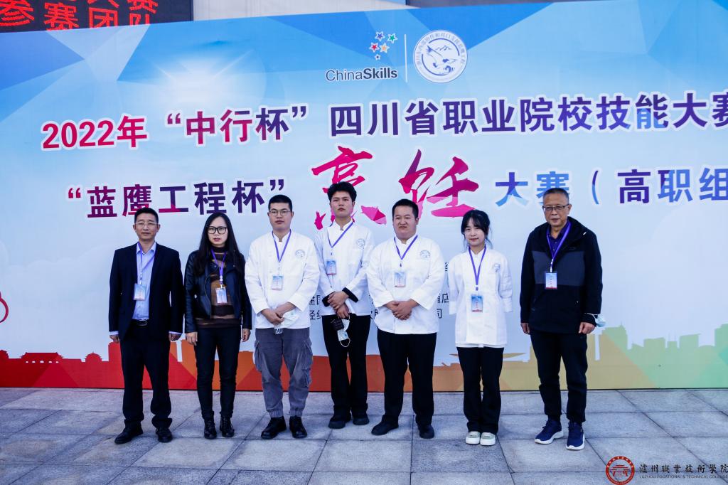 2022年11月2日,2022年“中行杯”四川省职业院校技能大赛暨“蓝鹰工程杯”烹饪比赛(高职组)在泸州职业技术学院落下帷幕。 本次大赛,我校参赛队由艾林、汤相松、尹桂芝、欧阳钊4名学生组成,李根生、刘湘担任指导教师;我校参赛队与全省其他10支参赛队伍通过激烈角逐,最终以总分排名第5位的成绩,荣获团体三等奖。