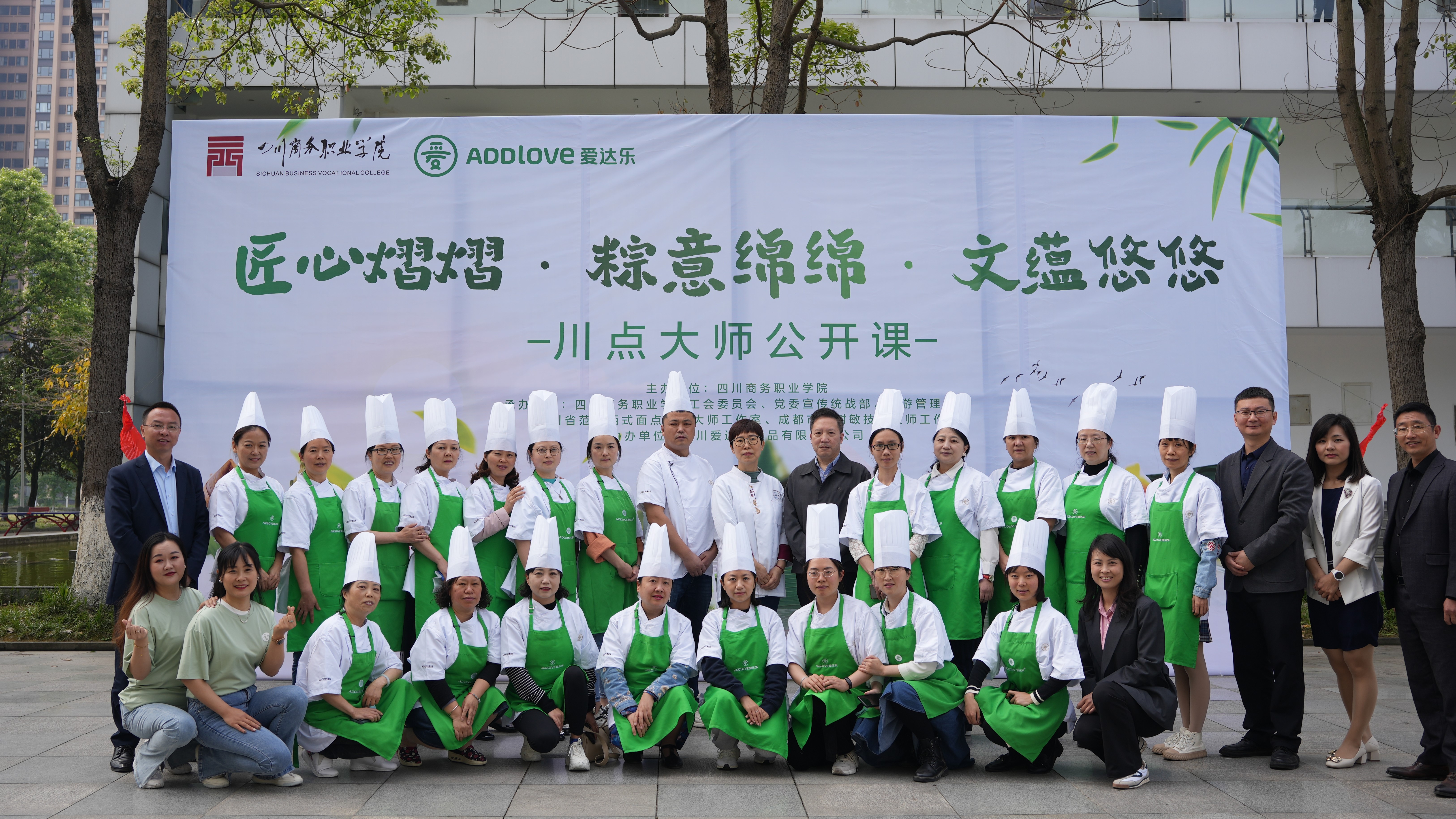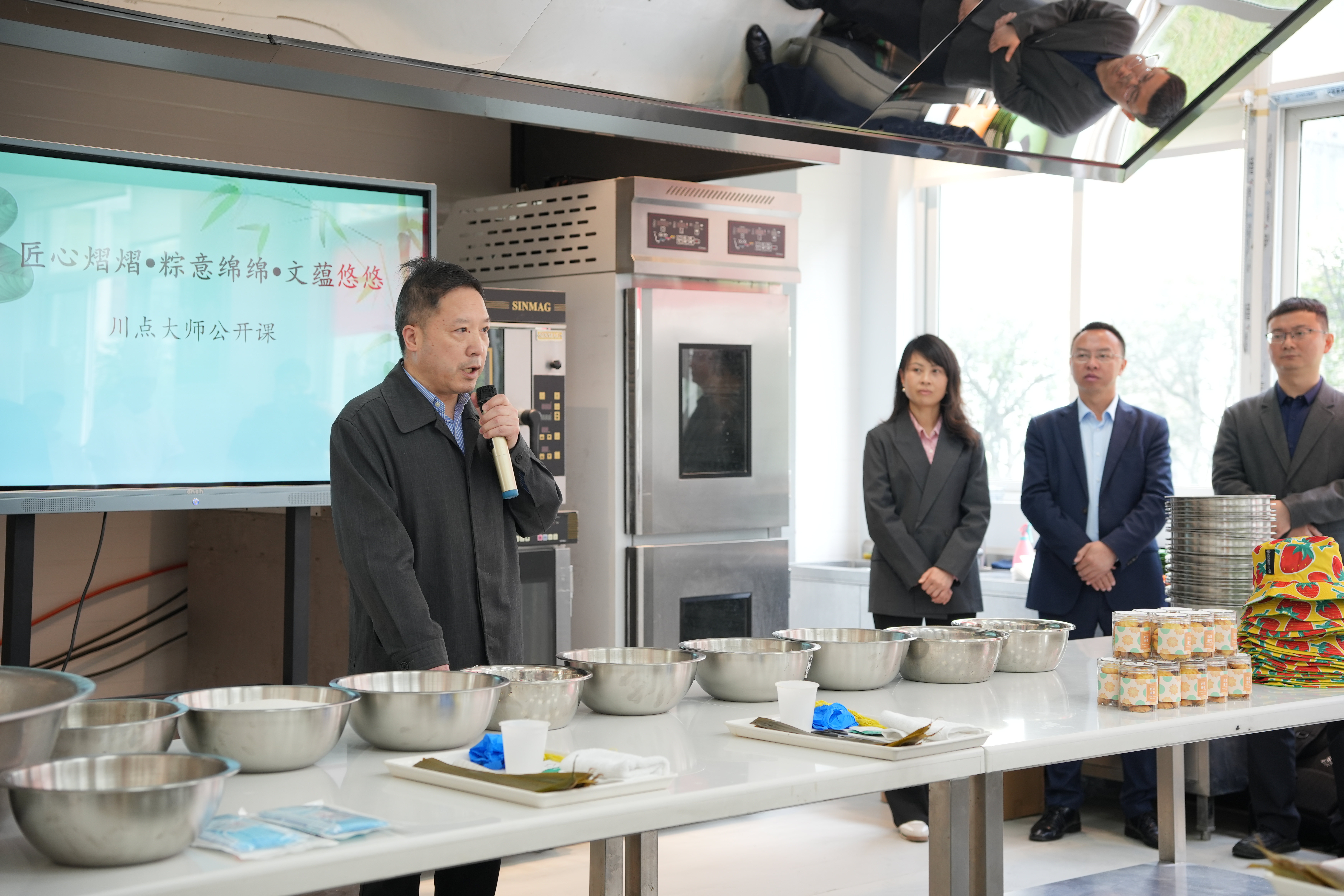 26日上午,以“传承中华传统美食文化,弘扬大国工匠精神”为主题的“匠心熠熠·粽意绵绵·文蕴悠悠”—川点大师公开课开课,四川省范忠西式面点技能大师工作室的领衔人范忠亲临课堂为学院师生做粽子的制作与创新教学示范,学院副院长官培生、四川爱达乐食品有限责任公司人才发展经理冯惠、以及学院相关职能部门负责人出席了本次公开课。