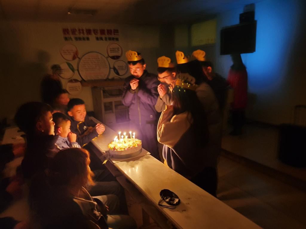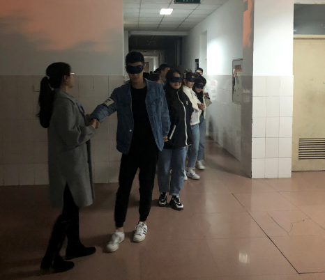 “生命之旅”活动主要分为两个阶段。首先,为增进同学之间的相互信任、默契程度,提升同学们的团队意识,所有同学一起完成了“手拉手”环走梯步游戏,大家在黑暗中紧握彼此的手。在活动结束时,大家一同为本月过生日的同学庆祝,一起品尝甜蜜的蛋糕,洋溢着幸福的笑容。