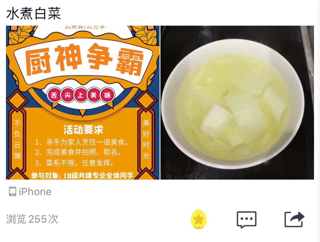 在这莺歌燕舞的四月,春熙相伴,群英荟萃。我们通过本次线上“厨神争霸”大赛,希望各位未来的“星级大厨”能够继续宅家再接再厉,重新燃起学习与生活的热情,不负云端美好时光!