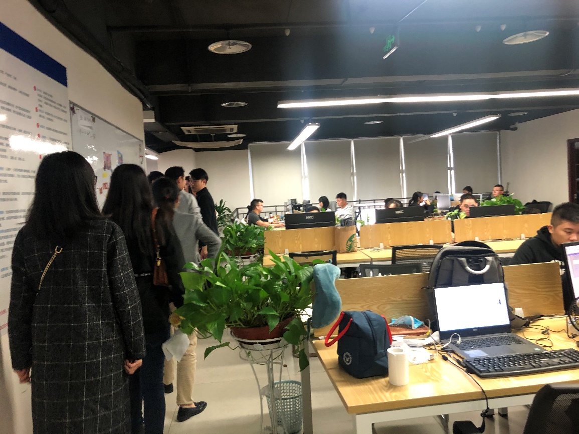 在交流会结束后,在技术总监赵总的陪同下,本次同行参观学习的企业教师团队对在该企业参加顶岗实习的6名共建学生进行了亲切慰问。在走访过程中,老师们详细了解了学生的实习岗位、工作内容以及薪资待遇情况等,尤其关注学生的工作状态和亟待解决的问题。当然,企业的相关领导也对我系顶岗实习的学生给予了高度评价,肯定了他们在岗位实践过程中积极的工作态度和吃苦耐劳的精神,并希望他们永葆初心、再接再厉,后期能在岗位上有所成长。